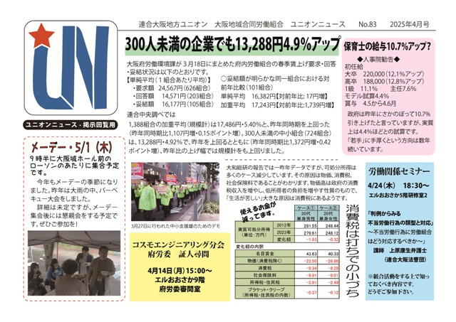 ■UNユニオンニュースは大阪地域合同労組の広報紙です。どなたでもごらん頂けます。